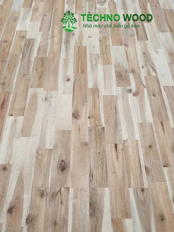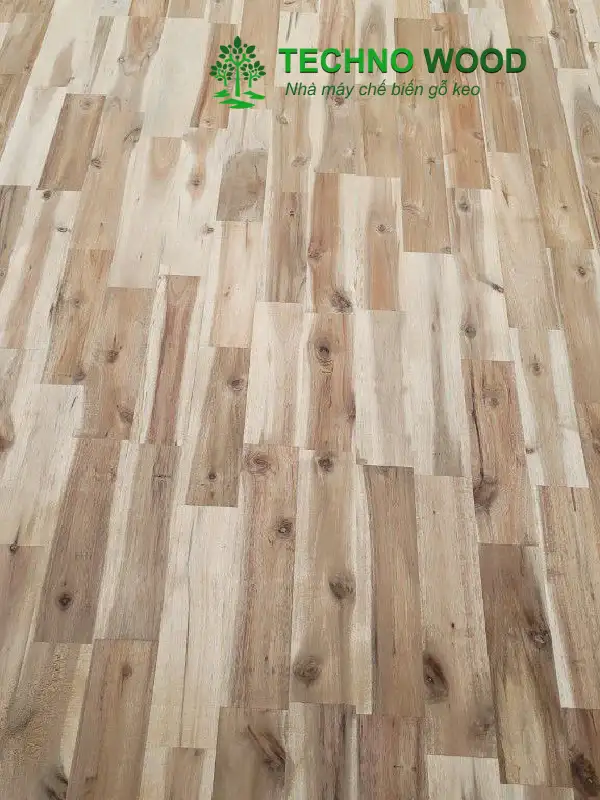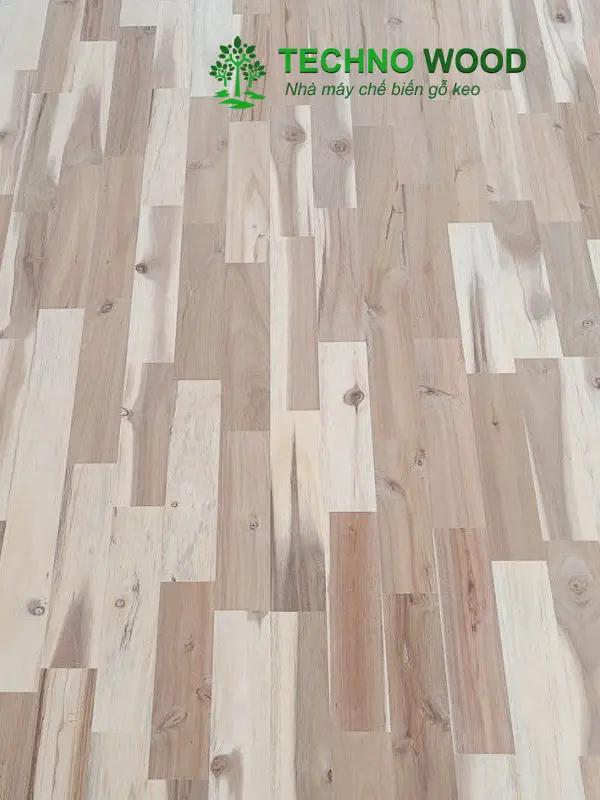 Góc chụp cận cảnh ván gỗ tràm ghép thanh AC.