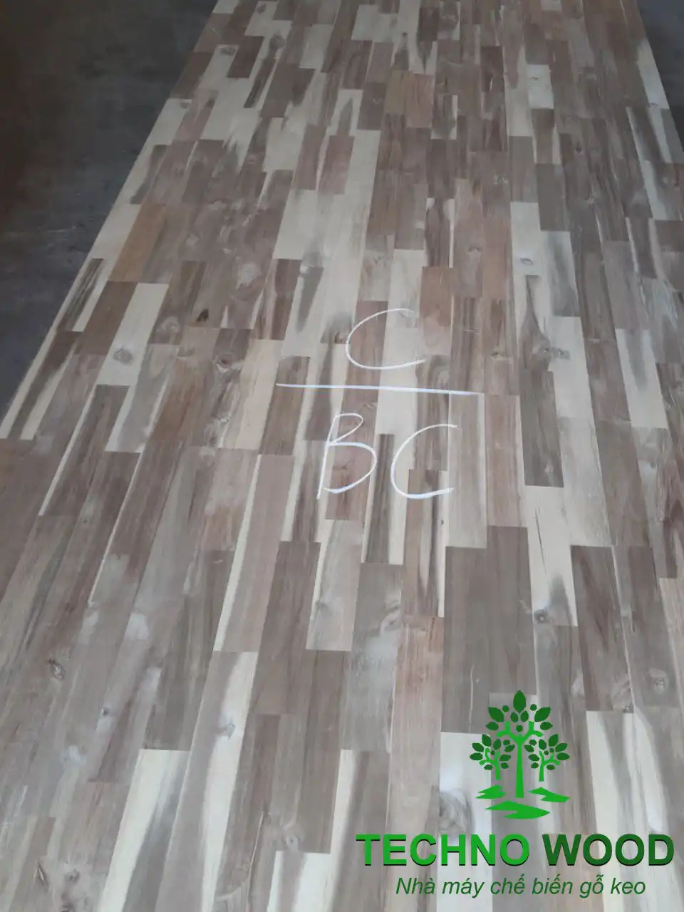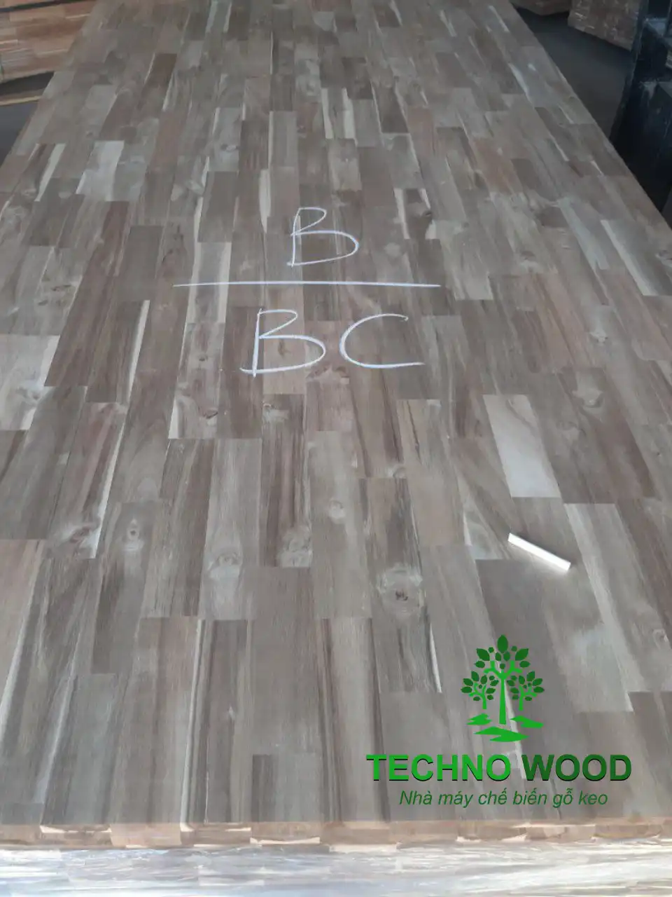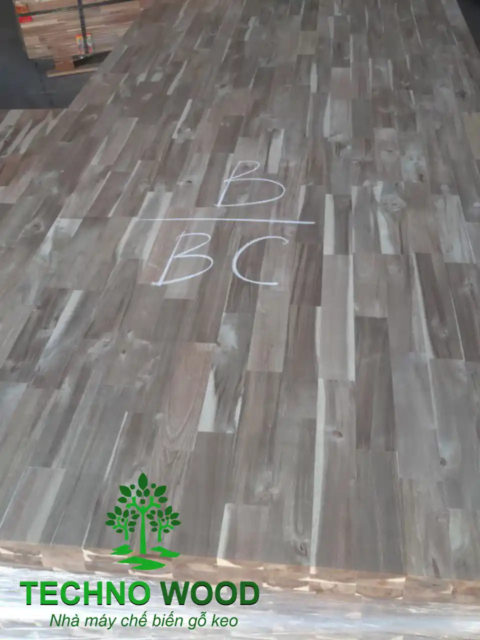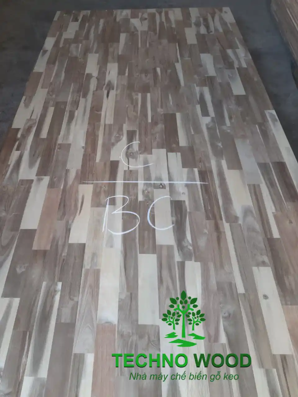 Một góc chụp cận cảnh khác của mặt B ván gỗ tràm ghép thanh BC.